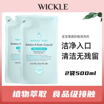 惟呵(wickle)宝宝专用奶瓶果蔬玩具清洗剂 替换装 500ml*2袋