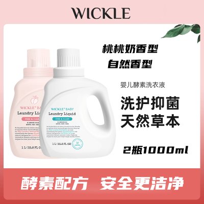 惟呵(wickle)宝宝专用去污抑菌酵素洗衣液 自然香+桃桃香 1L+1L