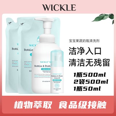 惟呵(wickle)宝宝专用奶瓶果蔬玩具清洗剂 500ml*1瓶+500ml*2袋+50ml 便携