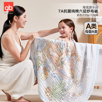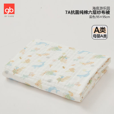好孩子 海底游乐园7A抗菌纯棉六层纱布被 蓝
