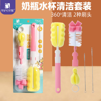 安配 奶瓶水杯清洁套餐奶瓶刷5件套-粉色(奶瓶刷*2+奶嘴刷+吸管刷*2)