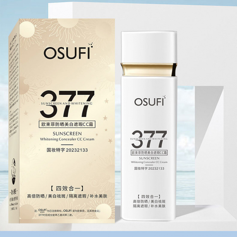 欧束菲377防晒霜美白遮瑕隔离三合一cc霜提亮肤色防紫外线清爽