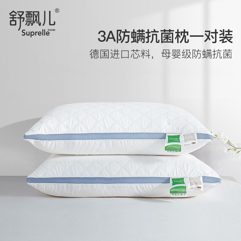舒飘儿3A防螨抗菌枕头一对装 家用可水洗软枕芯枕头芯单人