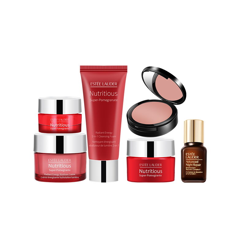 雅诗兰黛红石榴小样六件套(小棕瓶精华7ml+洗面奶30ml+面霜15ml+眼胶5ml+晚霜7ml+唇膏lip balm)