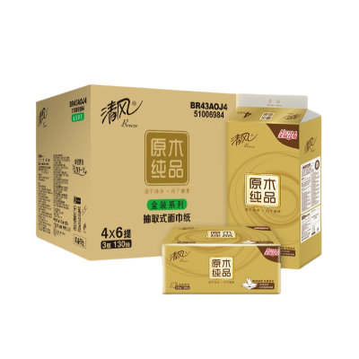 清风(Breeze)原木金装3层抽取式面巾纸 130抽*24包