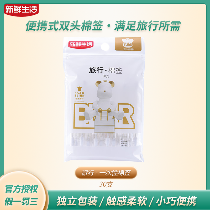 新鲜生活 出行必备牙线/棉签一次性双头化妆棉棒家用棉签棒日用