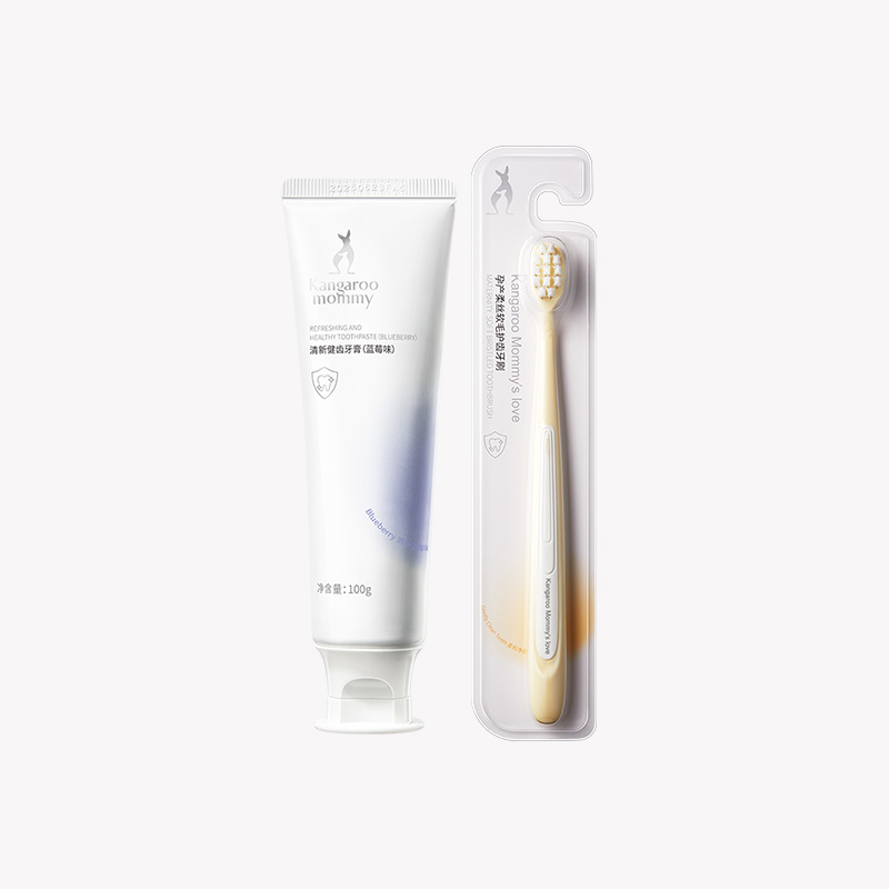 【孕期口腔健康】袋鼠妈妈准孕妇牙膏月子软毛牙刷专用无添加氟清新口气官方旗舰店