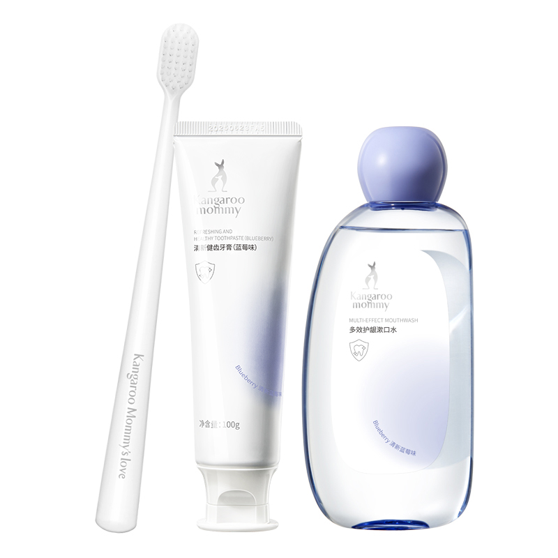 袋鼠妈妈准孕妇牙膏牙刷漱口水套装月子牙刷专用护齿护牙龈漱口水套装口腔用品旗舰店