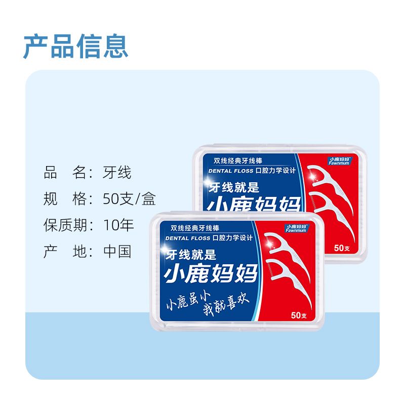 小鹿妈妈 深层牙线双线设计洁齿细滑牙线 50支/盒*3盒