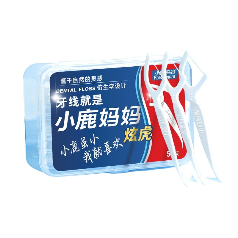 小鹿妈妈 炫虎细滑牙签家庭装超细牙线棒50支/盒*3盒