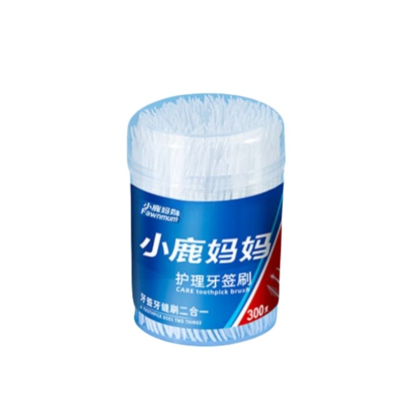 小鹿妈妈 口腔牙签刷牙线塑料双头鱼骨软毛刷 300支*2桶