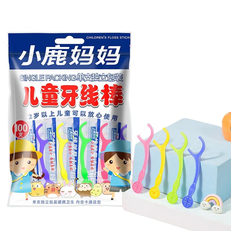 小鹿妈妈 护理单支独立儿童牙线超细宝宝牙线棒 100支/袋