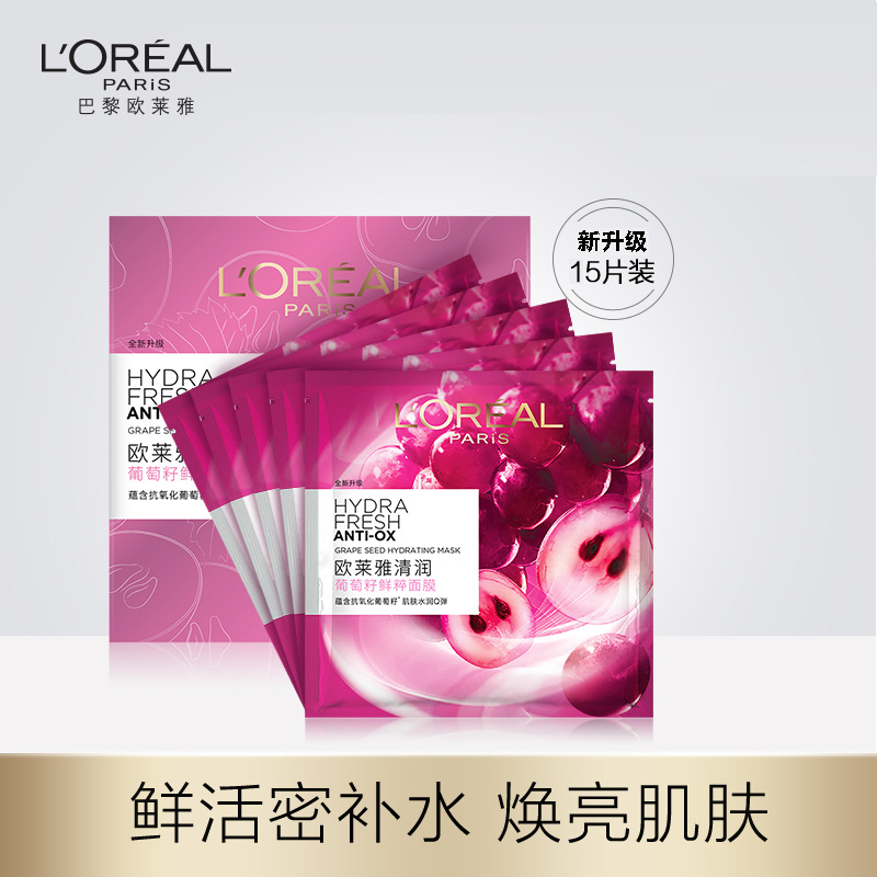 L'oreal/欧莱雅 葡萄籽鲜粹面膜 15片/30片 补水保湿
