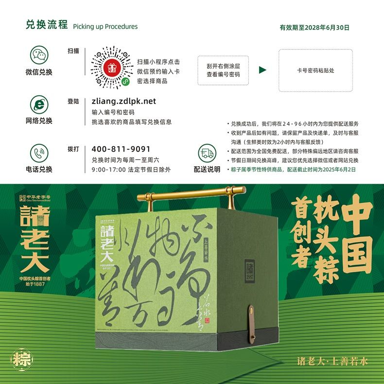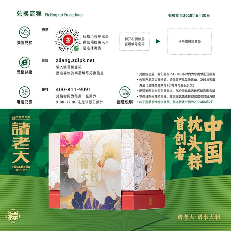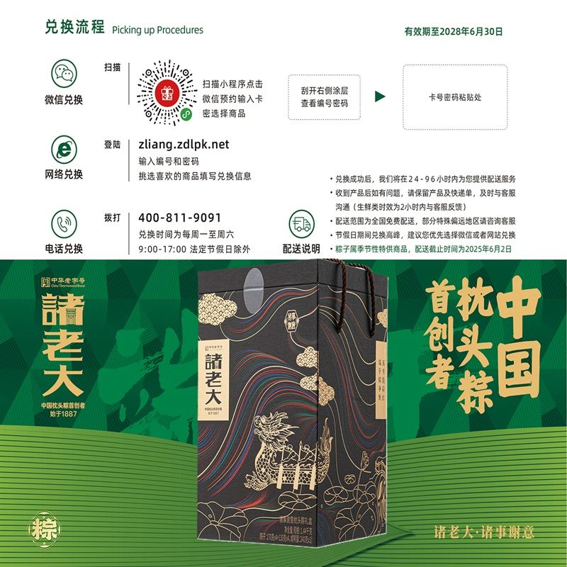 〖八选一礼券〗诸老大诸事大利枕头粽礼盒1700g 提货券(179型) 端午节礼盒