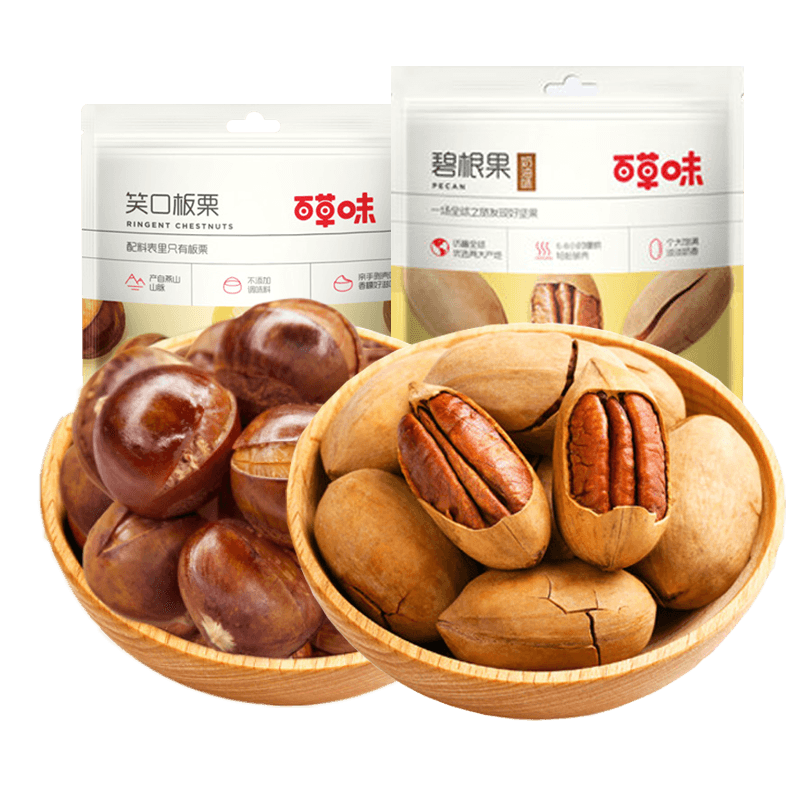 百草味坚果零食组合220g碧根果板栗零食大礼包网红下午茶休闲充饥夜宵