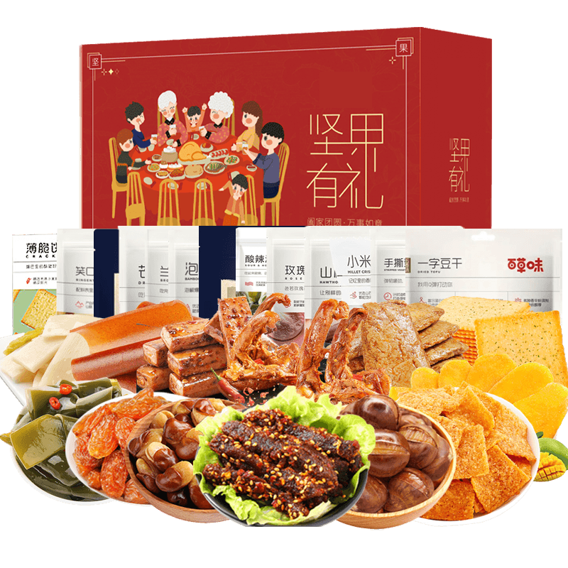 百草味 年的味道零食礼盒1126g木瓜干鸭锁骨坚果大礼包网红下午茶休闲充饥夜宵礼盒