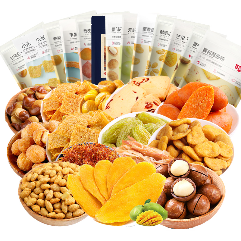 百草味坚果零食组合板栗仁牛肉丝夏威夷果坚果零食大礼包网红下午茶休闲充饥夜宵