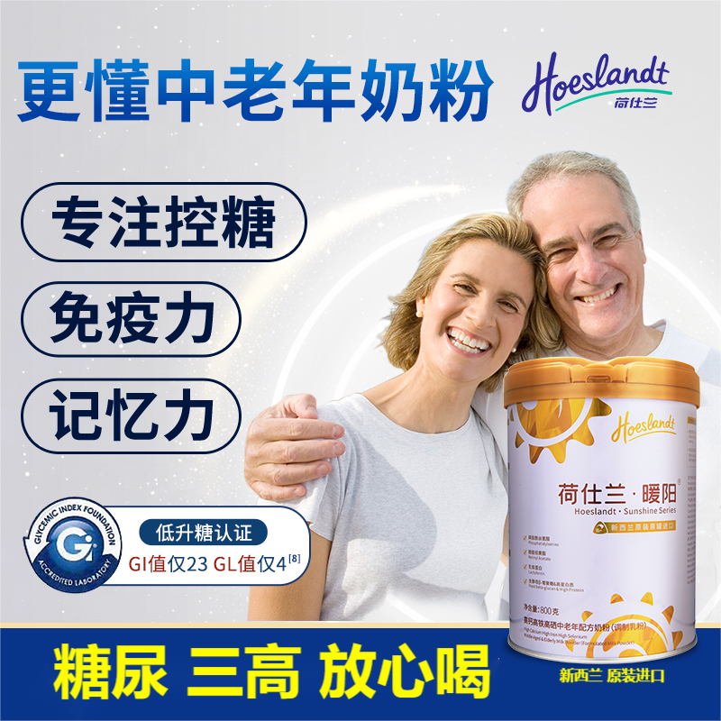 荷仕兰 暖阳中老年奶粉高钙低脂高铁高硒 低GI配方无蔗糖 新西兰原装进口