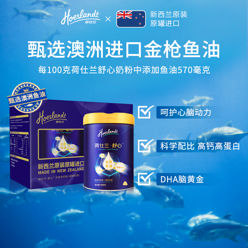 荷仕兰 舒心中老年奶粉高钙高蛋白 无蔗糖含金枪鱼油 新西兰原装原罐进口