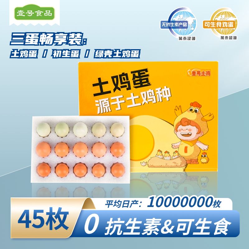 壹号土鸡蛋三拼蛋初生蛋土鸡蛋绿壳蛋45枚