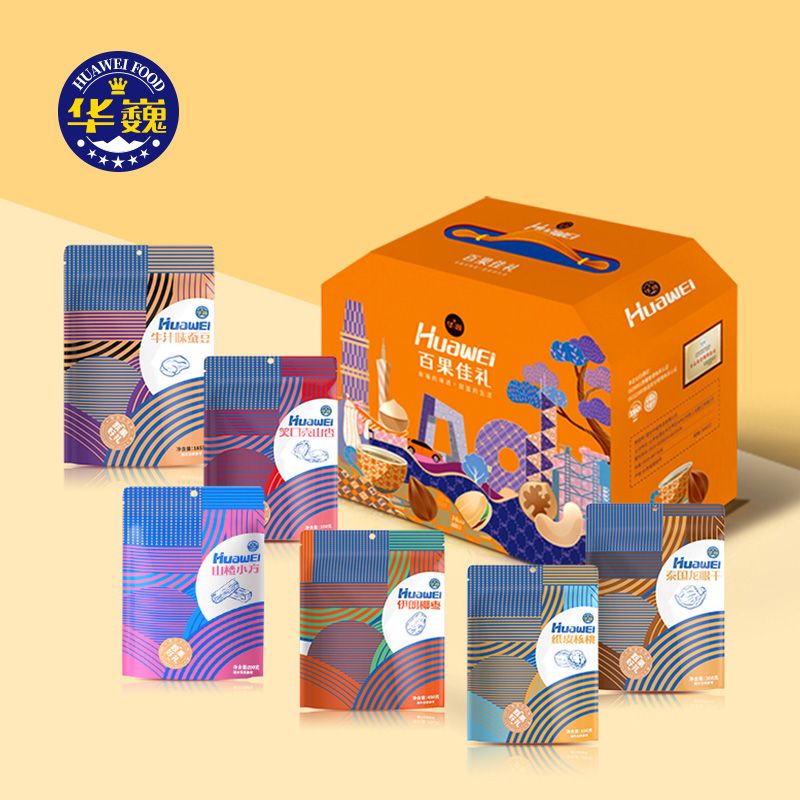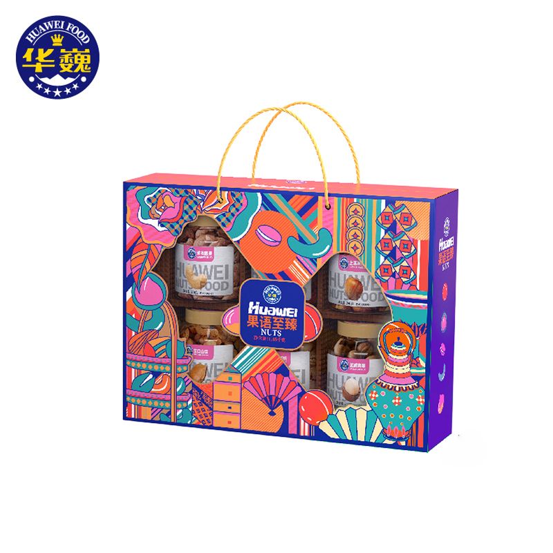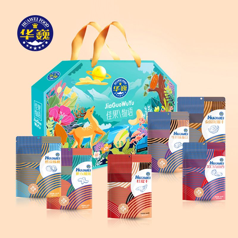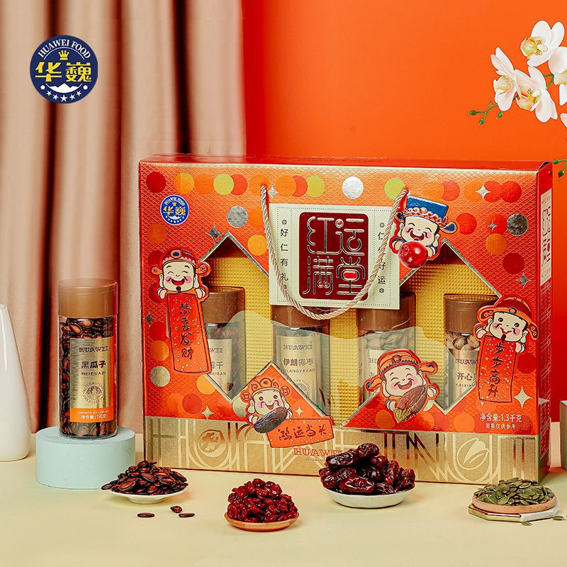 华巍百果佳礼(6袋装)商超版1415g /盒(笑口山杏/兰花豆/薄皮核桃/山楂小方/椰枣/龙眼干)