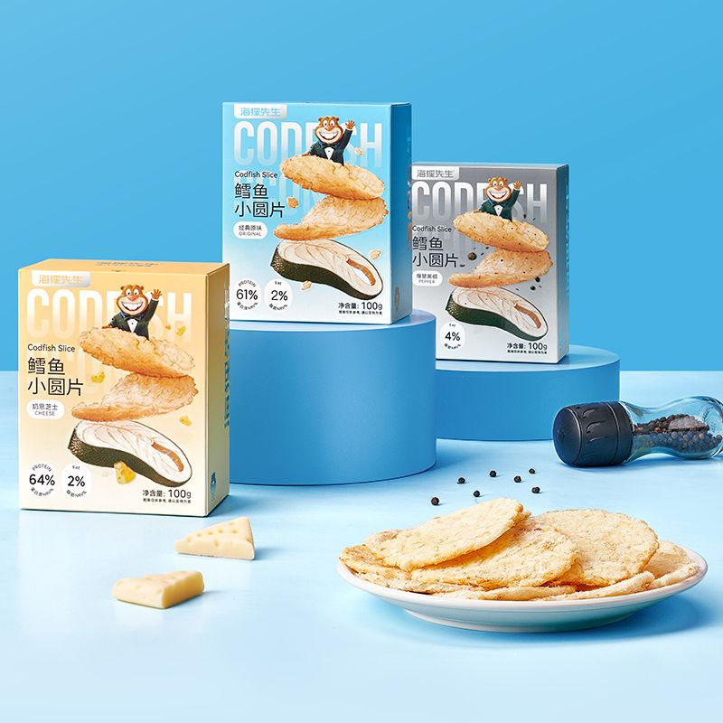 海狸先生鲜烤鳕鱼小圆片100g*3盒 每盒9-10袋