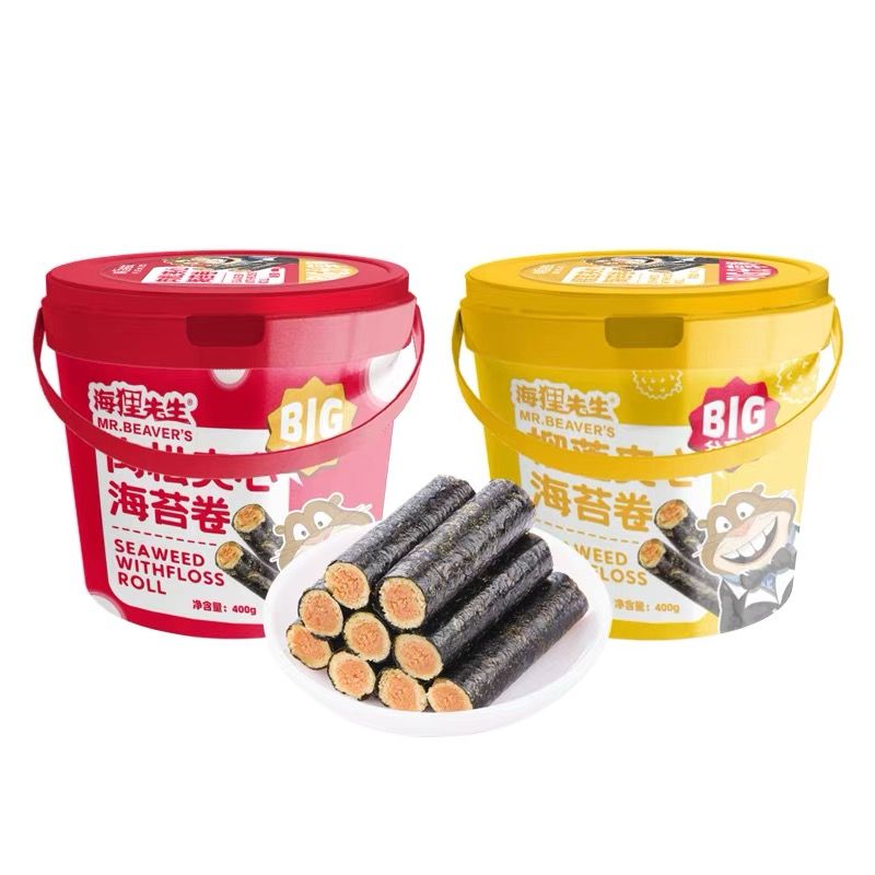 海狸先生榴莲味肉松味夹心海苔卷400g/桶*2plus版