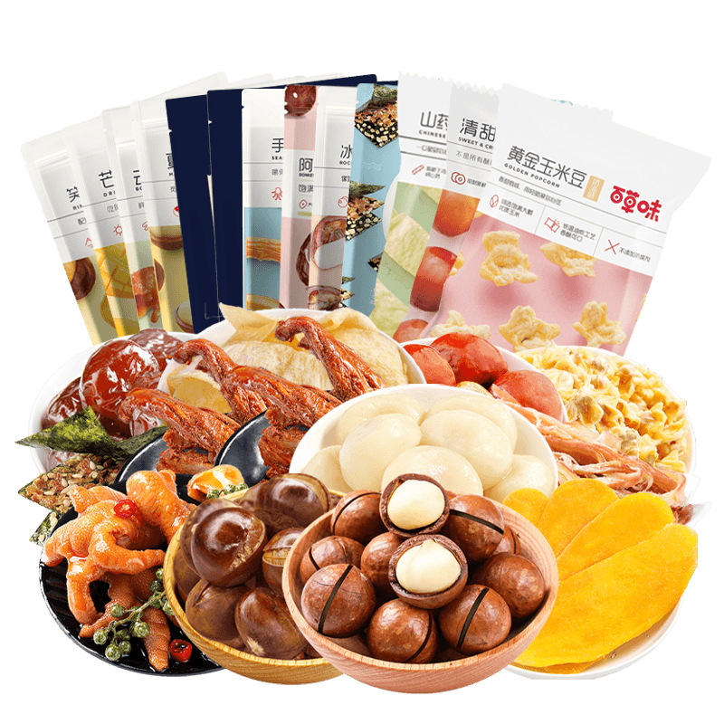 百草味招牌零食组合芒果干鱿鱼条脆马蹄坚果零食大礼包网红下午茶休闲充饥夜宵