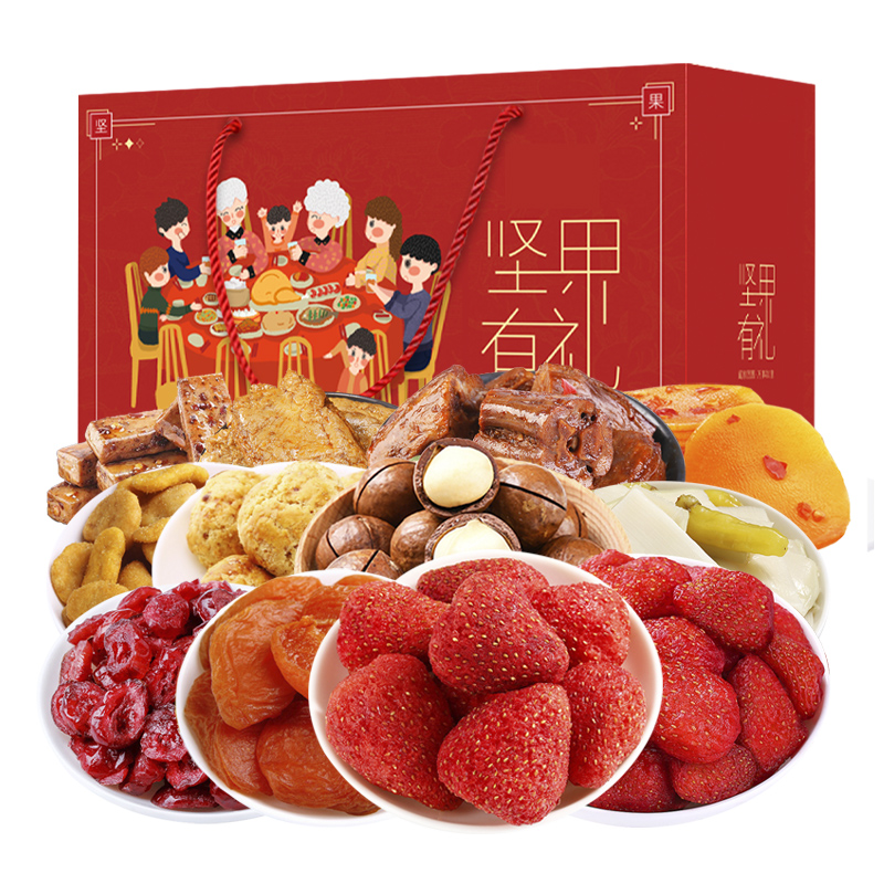 百草味开心礼坚果礼盒1228g巴旦木夏威夷果蚕豆零食大礼包网红下午茶休闲充饥夜宵