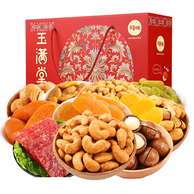 百草味开心礼果干坚果礼盒708g花生板栗仁红薯零食大礼包网红下午茶休闲充饥夜宵