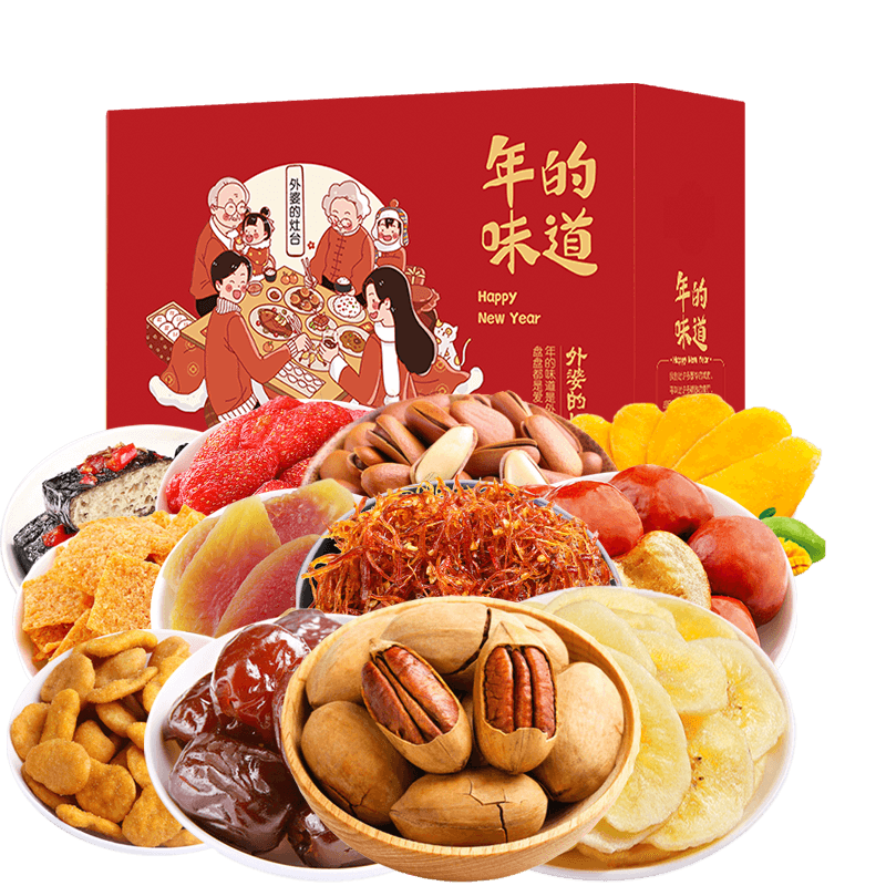 百草味 年的味道零食礼盒1213g芒果干牛肉丝坚果大礼包网红下午茶休闲充饥夜宵礼盒