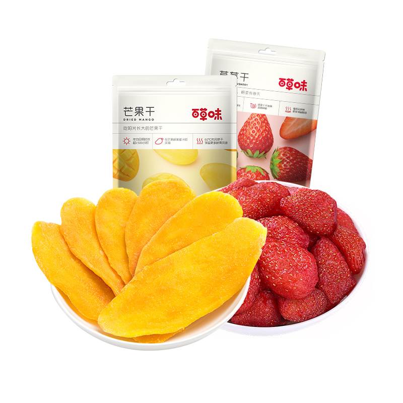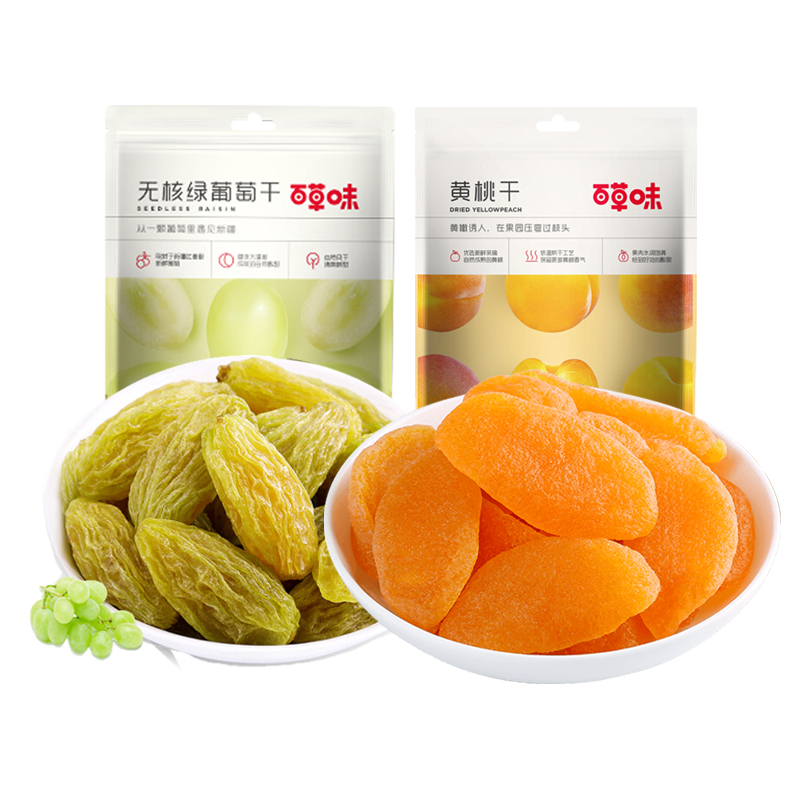 百草味水果干组合200g葡萄干黄桃干芒果干零食大礼包网红下午茶休闲充饥夜宵