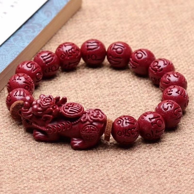 龙年六字真言大颗粒貔貅高含量朱砂手串男款