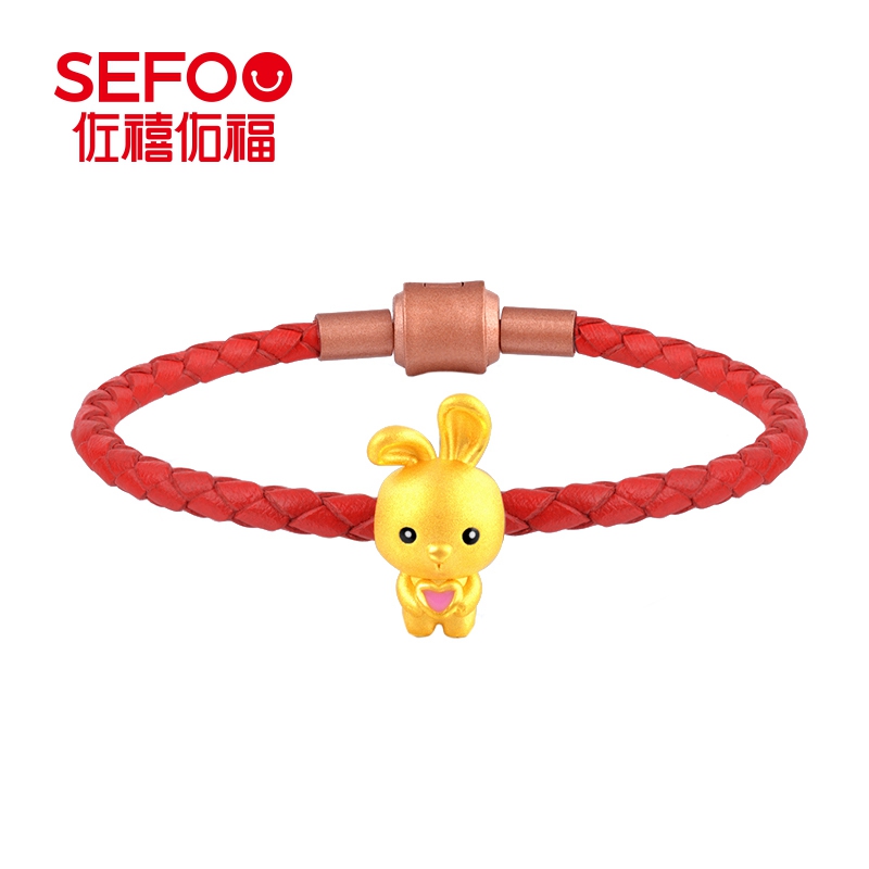 佐禧佑福黄金转运珠手链女999足金生肖兔3d硬金小兔子手绳本命年红绳手链ZXYFZXZ112