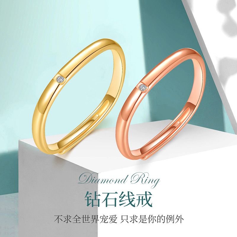 中银金行S925银钻石小方戒925银戒指活口均码