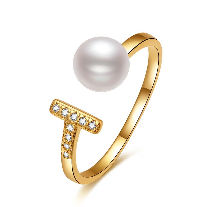 中银金行S925T字珍珠镶嵌戒指开口可调节戒指