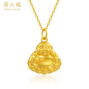 周六福足金笑脸弥勒佛吊坠-送S925银链ZLFA041741