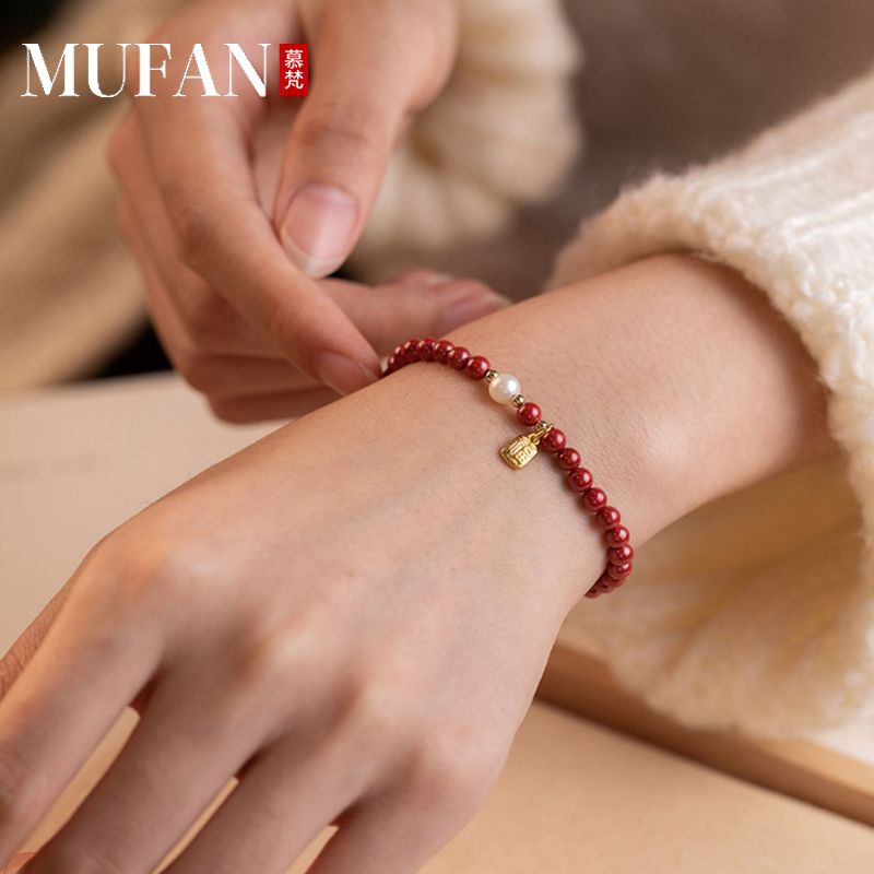 珍珠朱砂手链女小众设计福牌闺蜜手饰转运珠本命年手串礼物