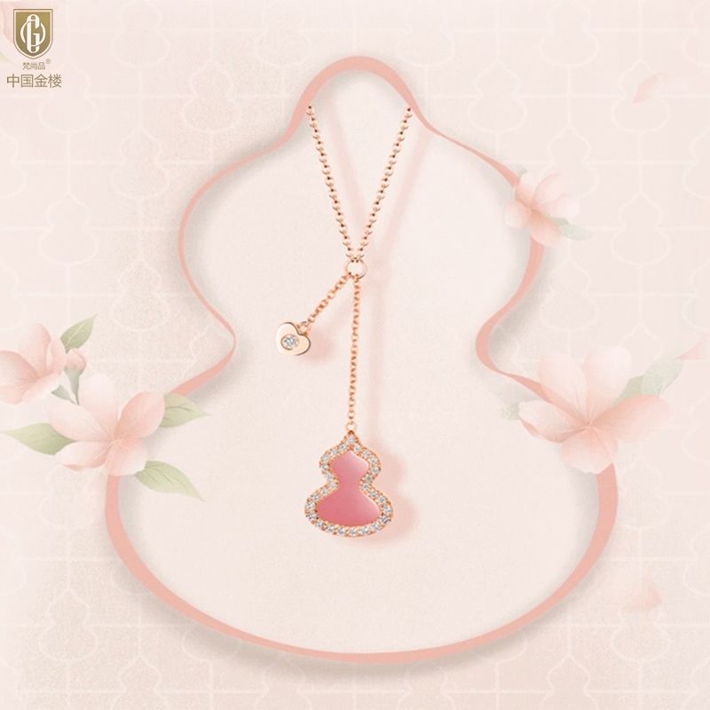 中国金楼梵尚品粉色麒麟爱心葫芦项链BKX79046393送礼好物(买一赠一送汉白玉手串)