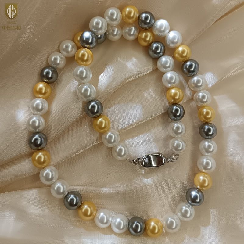 中国金楼梵尚品彩虹多巴胺南洋进口珍珠项链8mm ZZX10827311送礼送女友送长辈生日礼物(下单赠手机贴随机一个)