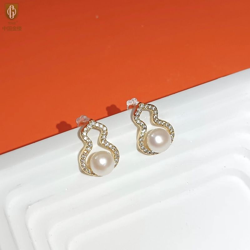 中国金楼梵尚品天然珍珠豪镶满钻福禄耳钉(对)ZZX05396935送礼送女友送长辈生日礼物