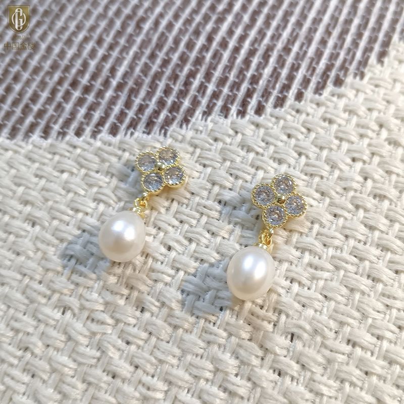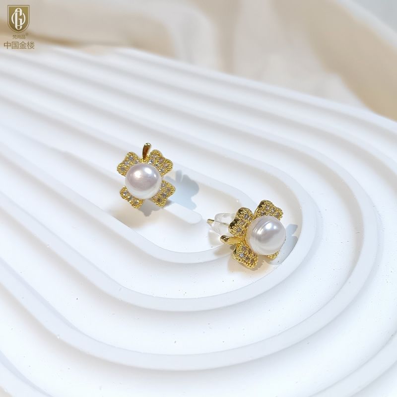 中国金楼梵尚品天然水滴珍珠满钻四叶草耳钉(对)ZZX21481320送礼送女友送长辈生日礼物