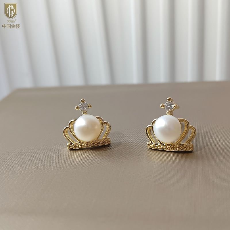 中国金楼梵尚品天然珍珠镶钻公主皇冠耳钉(对)ZZX12494210送礼送女友送长辈生日礼物