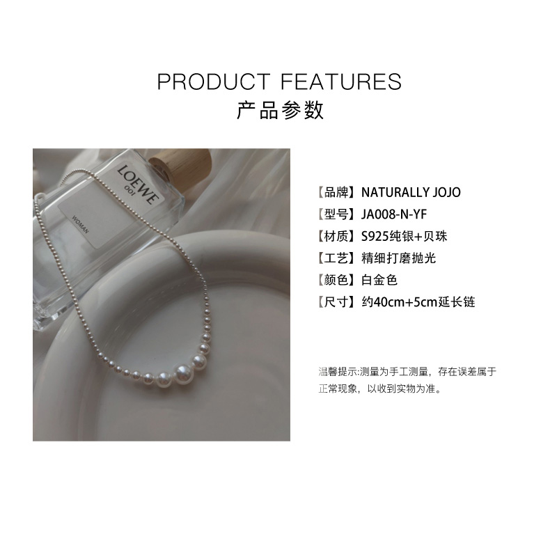 NATURALLY JOJO女士S925纯银微笑珍珠项链女轻奢小众设计高级感锁骨链2024新款爆款气质饰品
