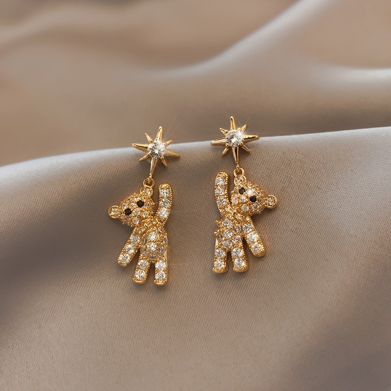 彤彤兔 S925银针韩版甜美可爱小熊简约气质小众个性耳钉女网红款耳环