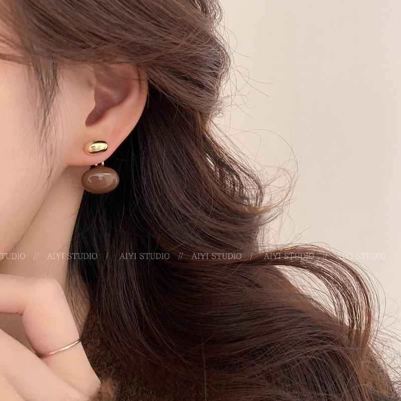 彤彤兔 S925银针美拉德豆豆耳环女耳钉轻奢高级感气质复古小耳饰