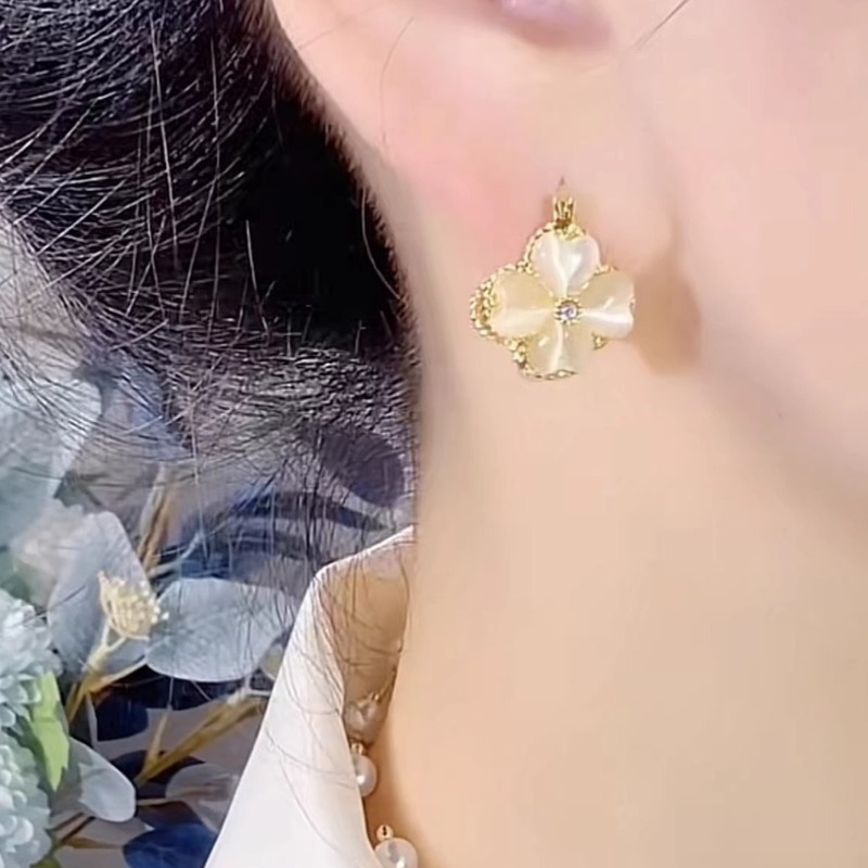 彤彤兔 高级感猫眼石花朵耳扣女潮气质百搭经典双面幸运草耳环