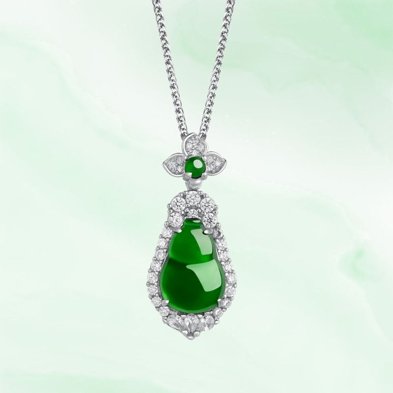 紫慕璃 新中式经典福禄葫芦 冰种 翡翠项链 女款