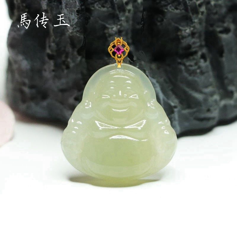 馬传玉 18K金镶和田玉弥勒佛吊坠送银链 MCY014