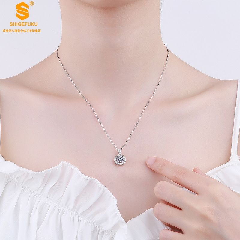 香港周六福 比利时莫桑钻吊坠豪镶圆饼